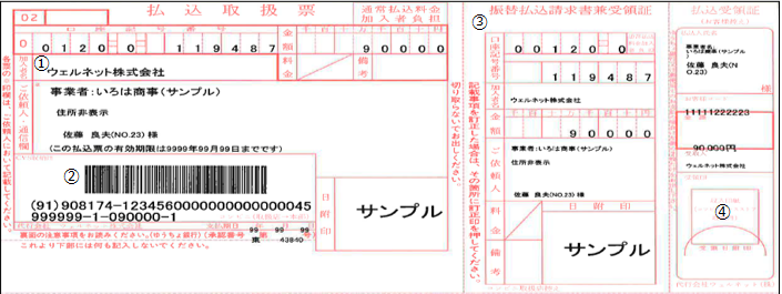 - ①ウェルネットが収納代行をしている加盟店でお支払いができます。