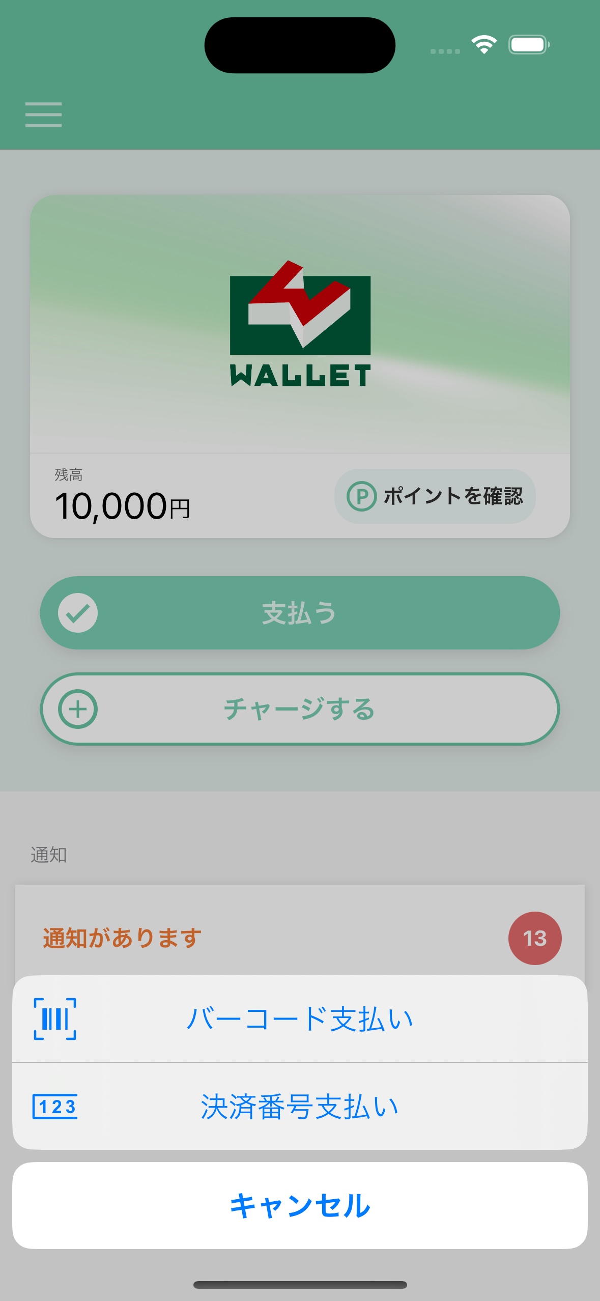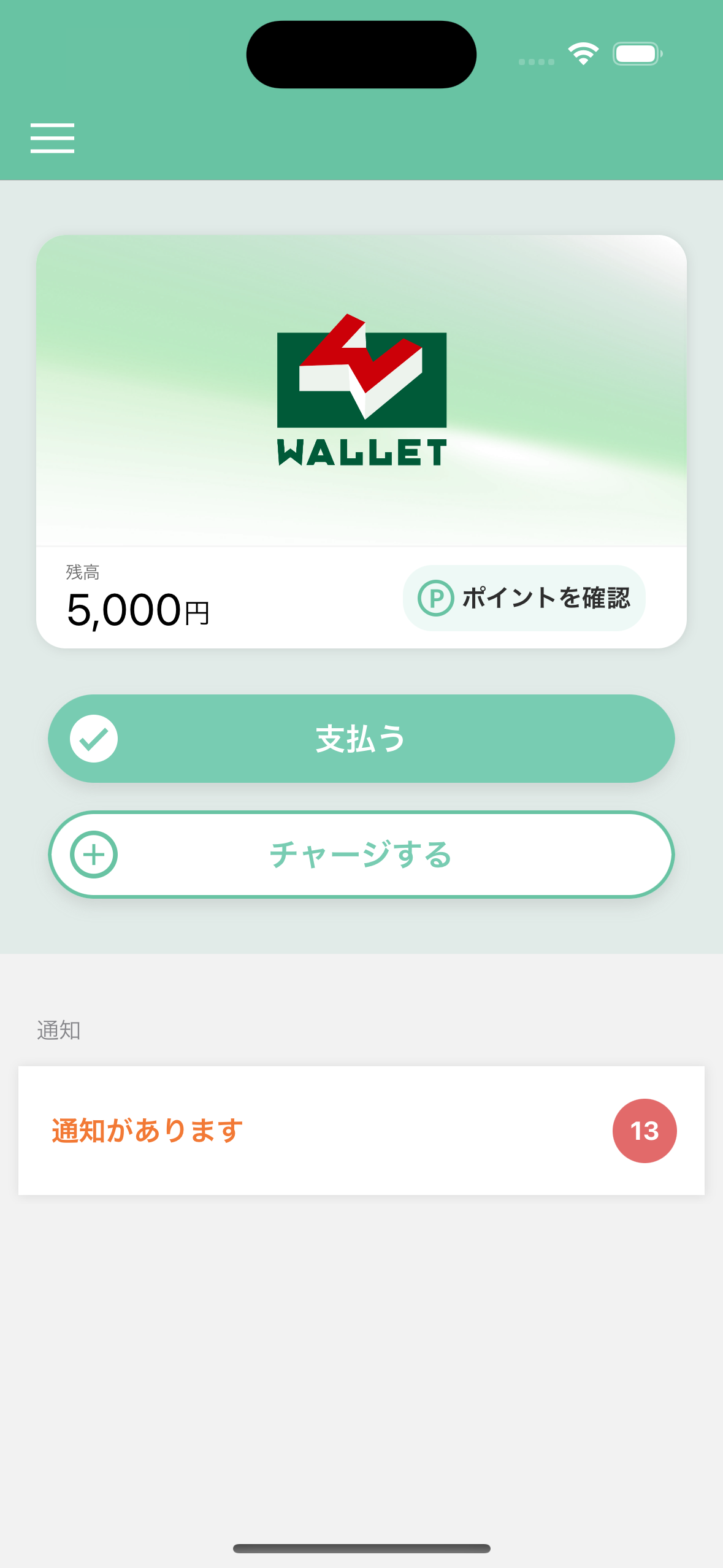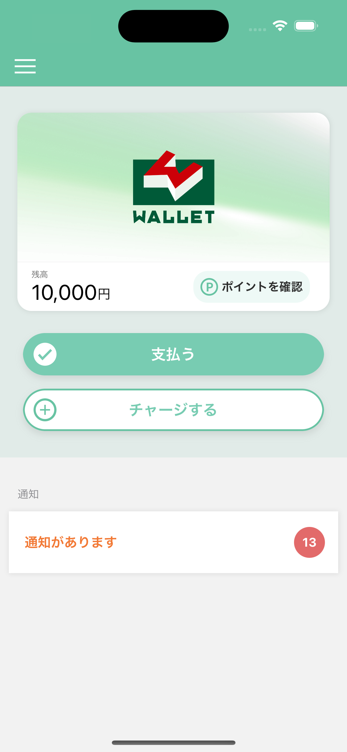 1. トップ画面の残高カードの下に表示されている[支払う]をタップしてください。