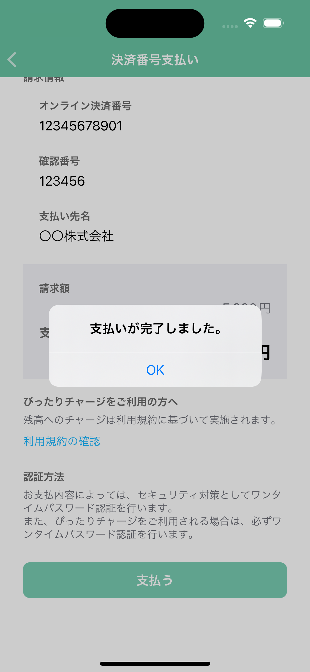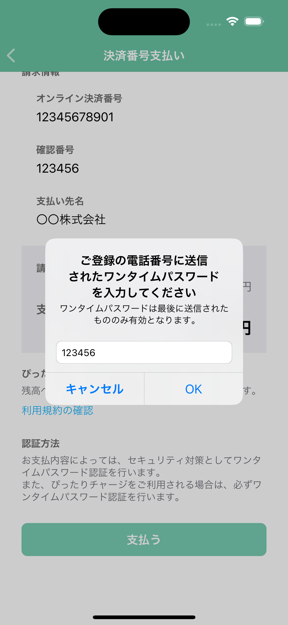 6. ワンタイムパスワードを入力して、「OK」をタップしてください。
