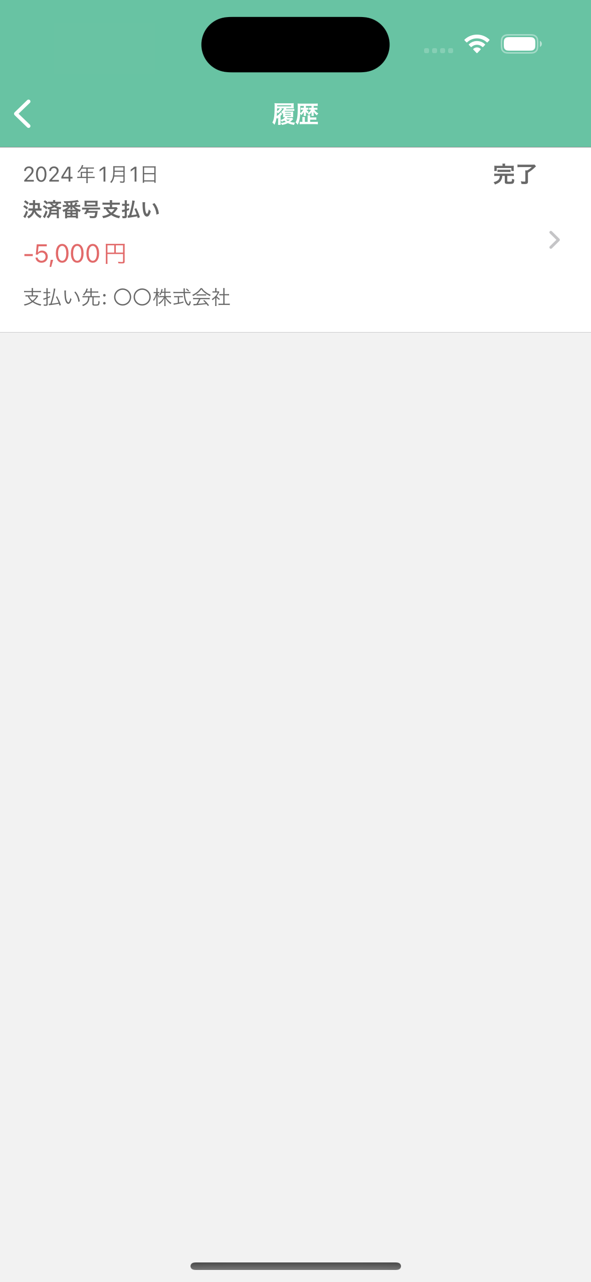 メニューの「履歴」から、履歴画面を開くと、支払履歴をご確認いただけます。